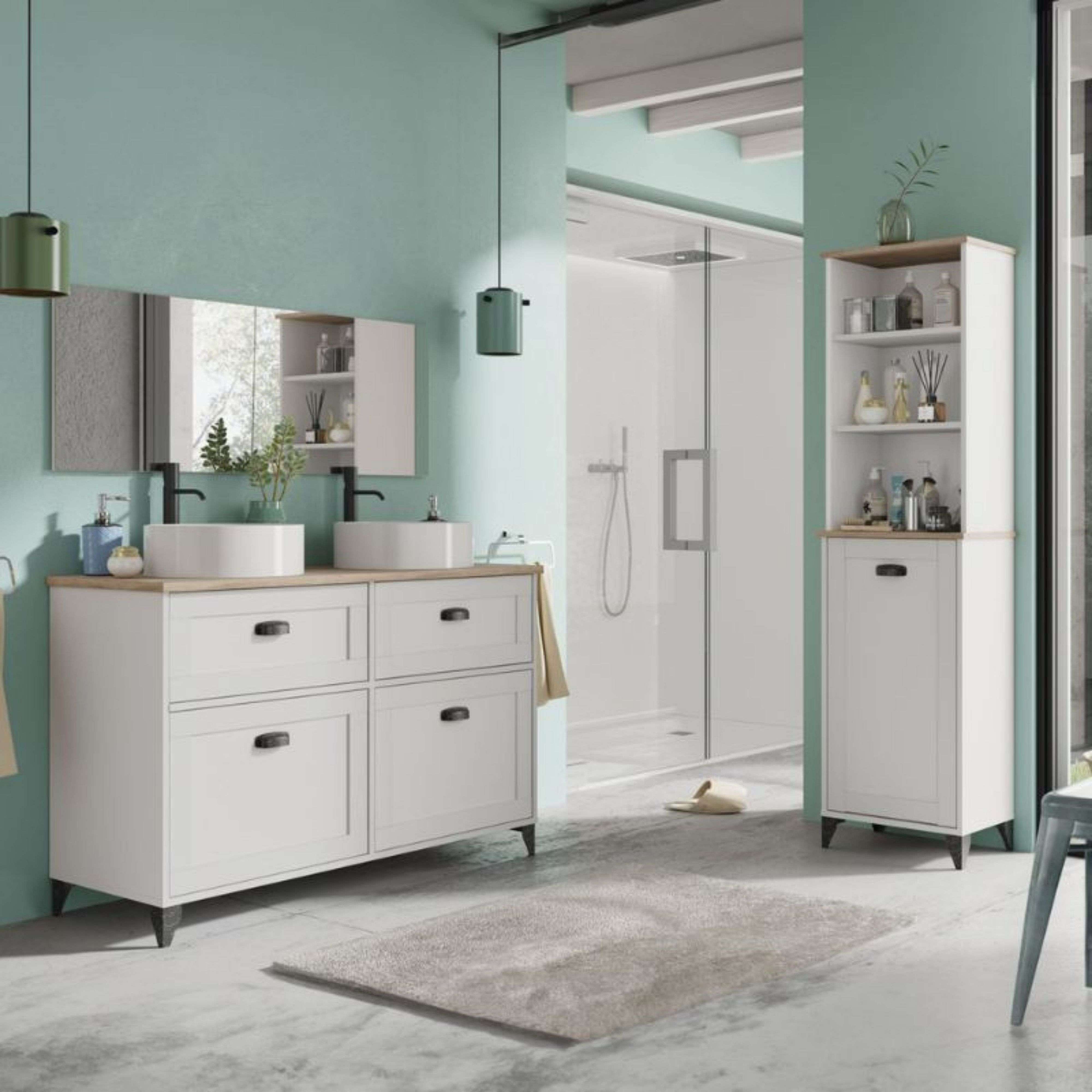 Conjunto Baño Toscana Blanco Soft y Roble Cambrian (Mueble+lavamanos+columna)