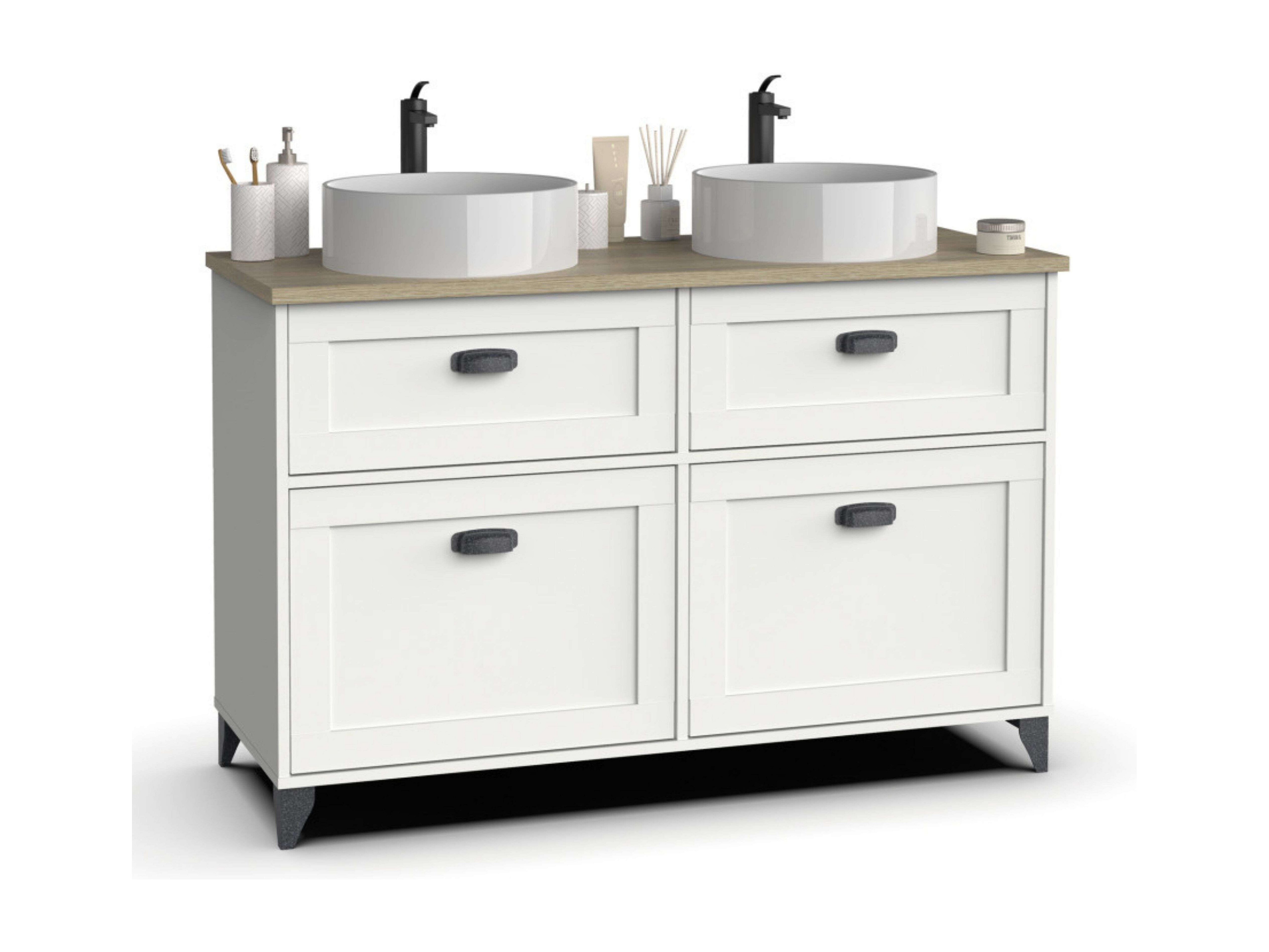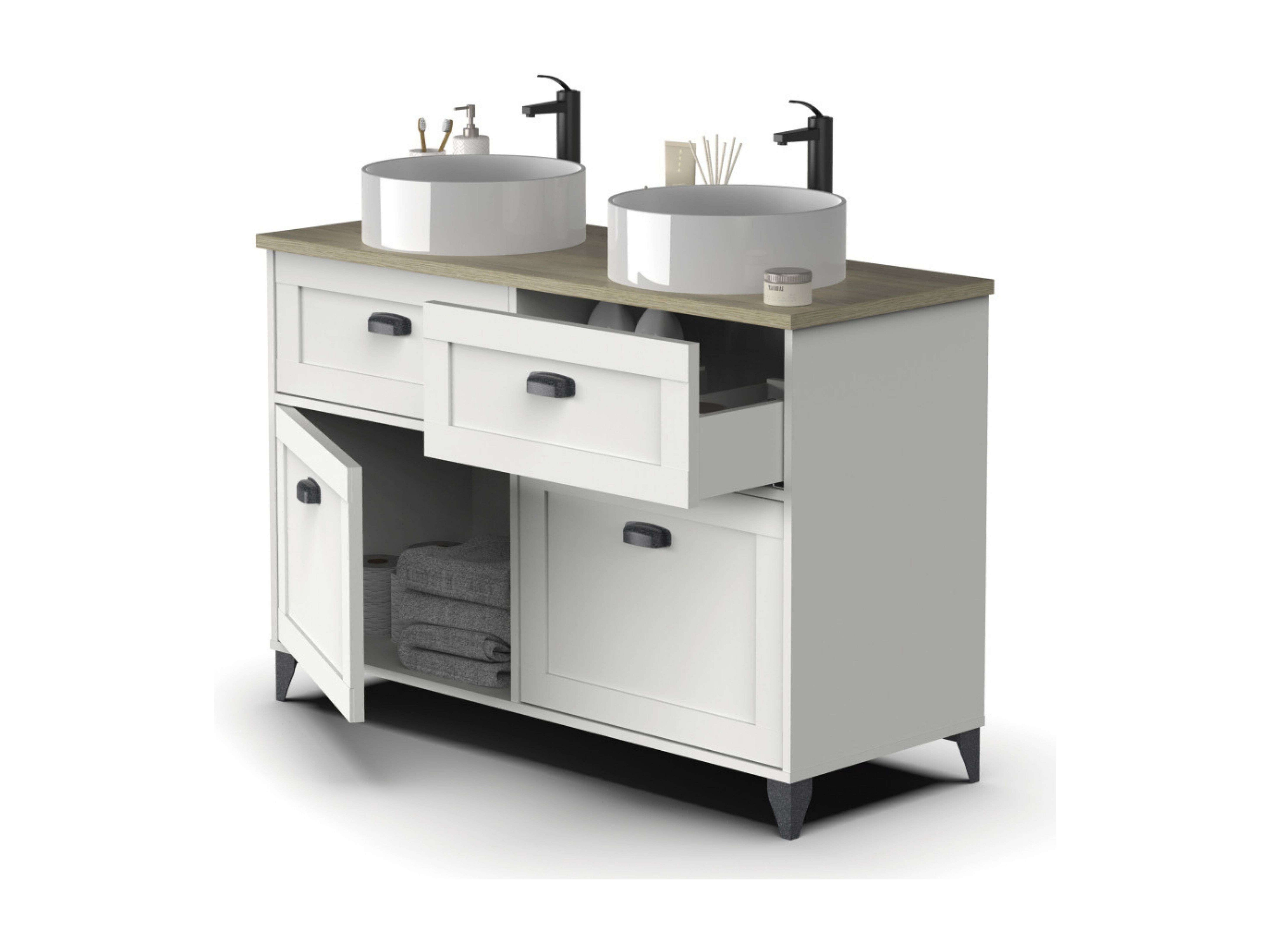 Conjunto de muebles de baño blanco colección BIRD. 2 columnas, mueble bajo lavabo, lavabo.