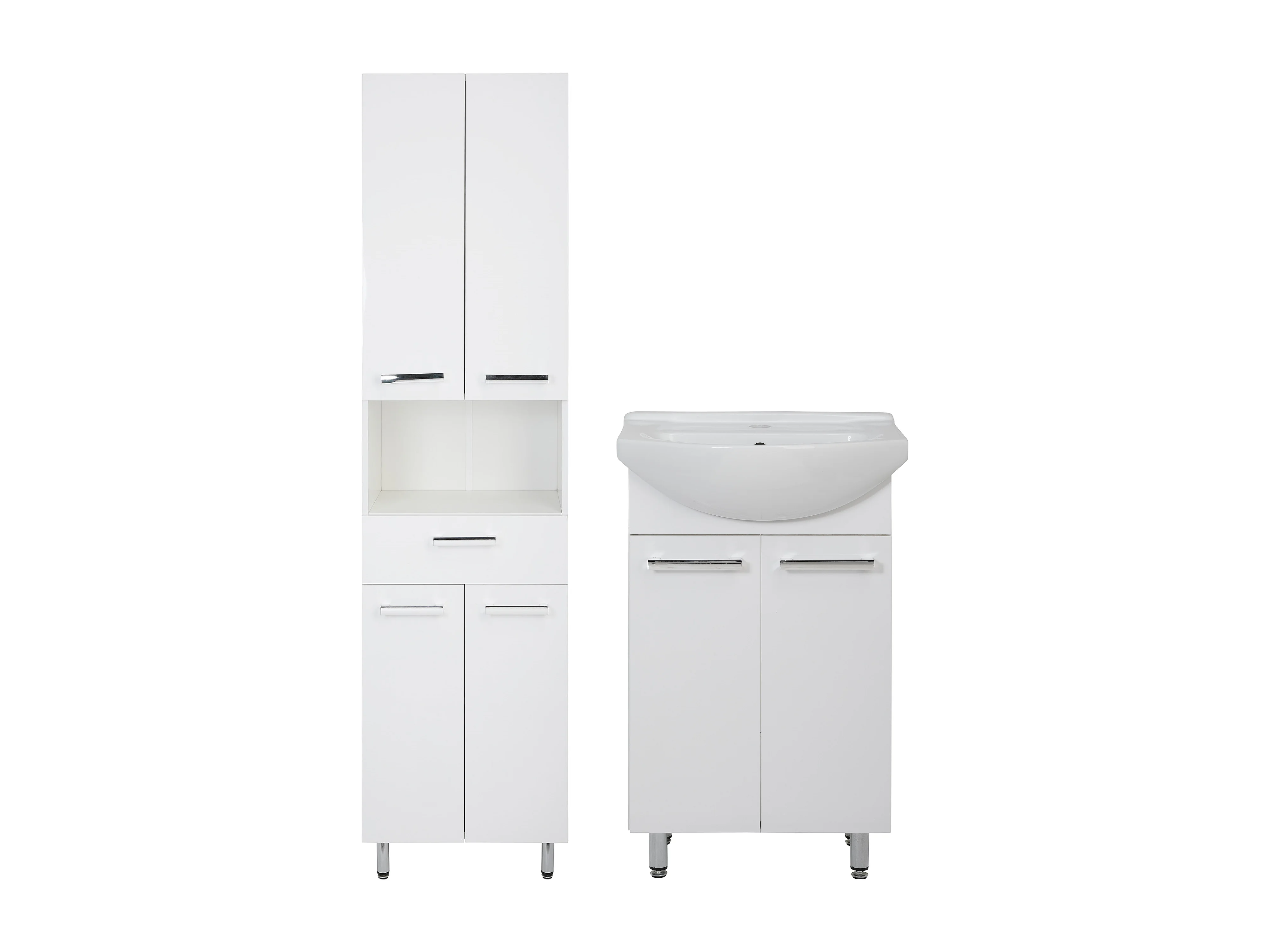 Conjunto blanco para baño de pie 50 cm Armario con lavabo Columna 50 cm Lupo
