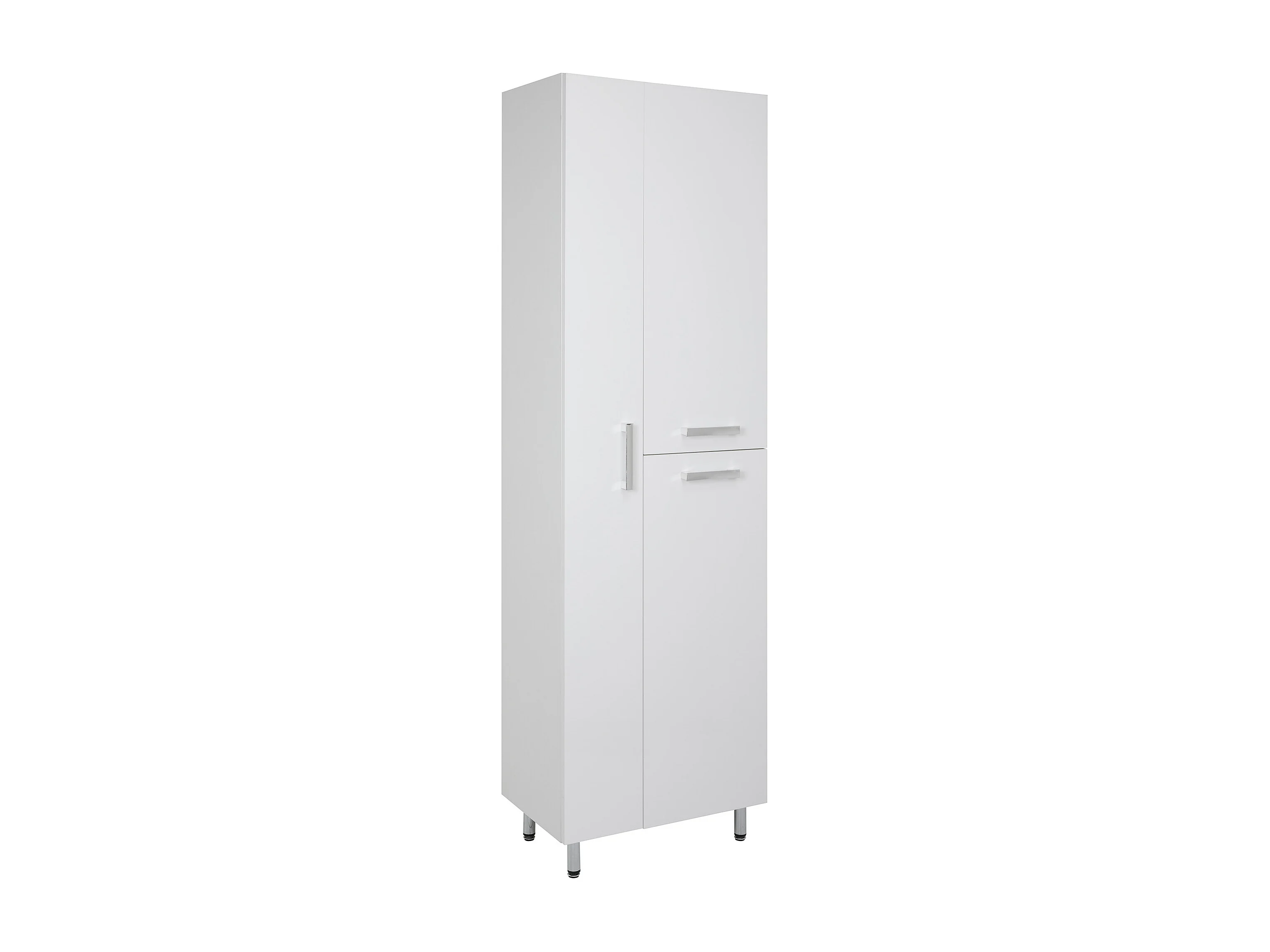 Conjunto blanco para baño de pie, 50 cm. Armario con lavabo. Columna con hueco para fregona, 55 cm. Media columna. Armario superior Lupo.