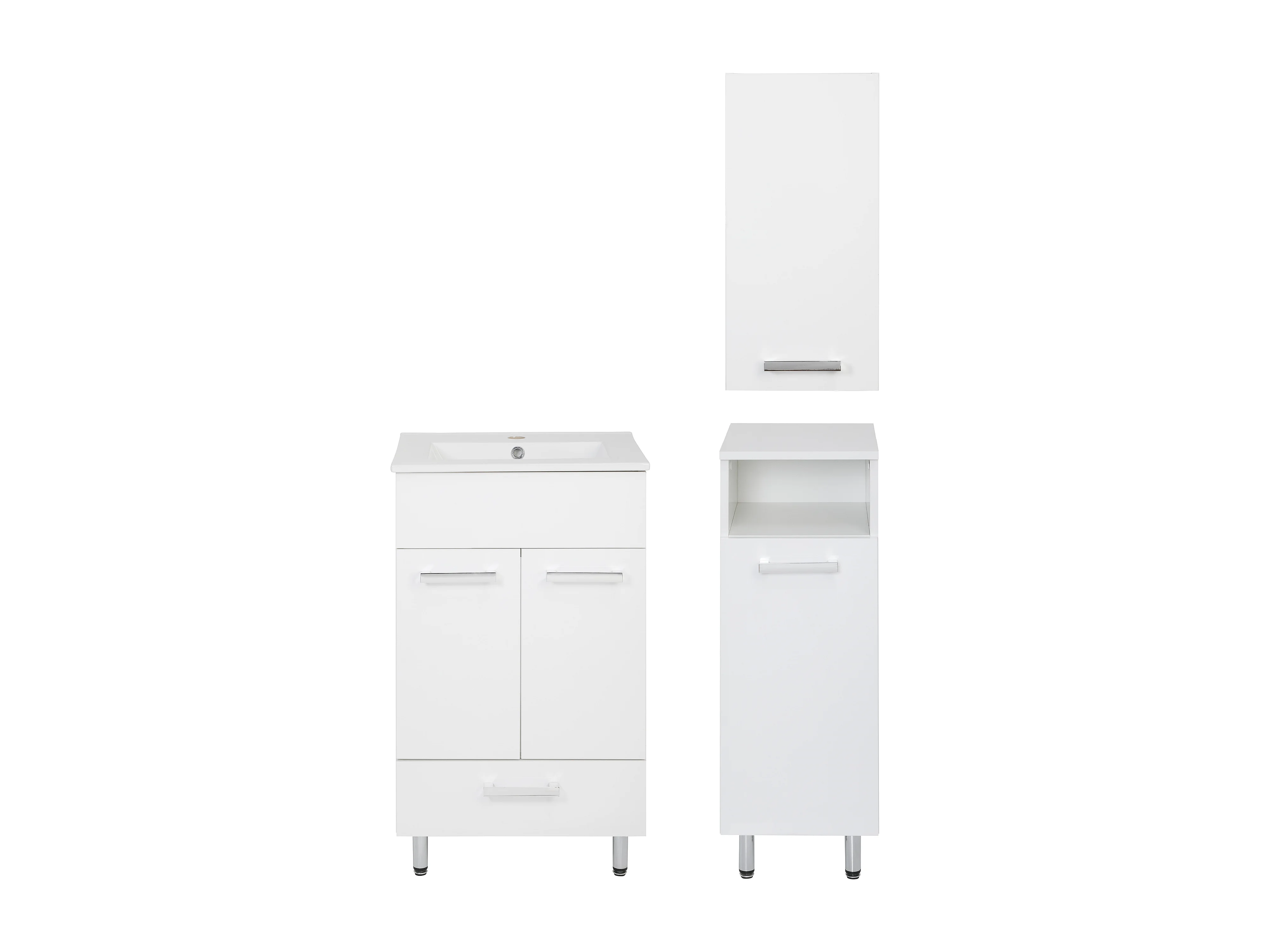 Conjunto blanco para baño de pie 50 cm Armario con lavabo Medio pilar Armario superior Lupo