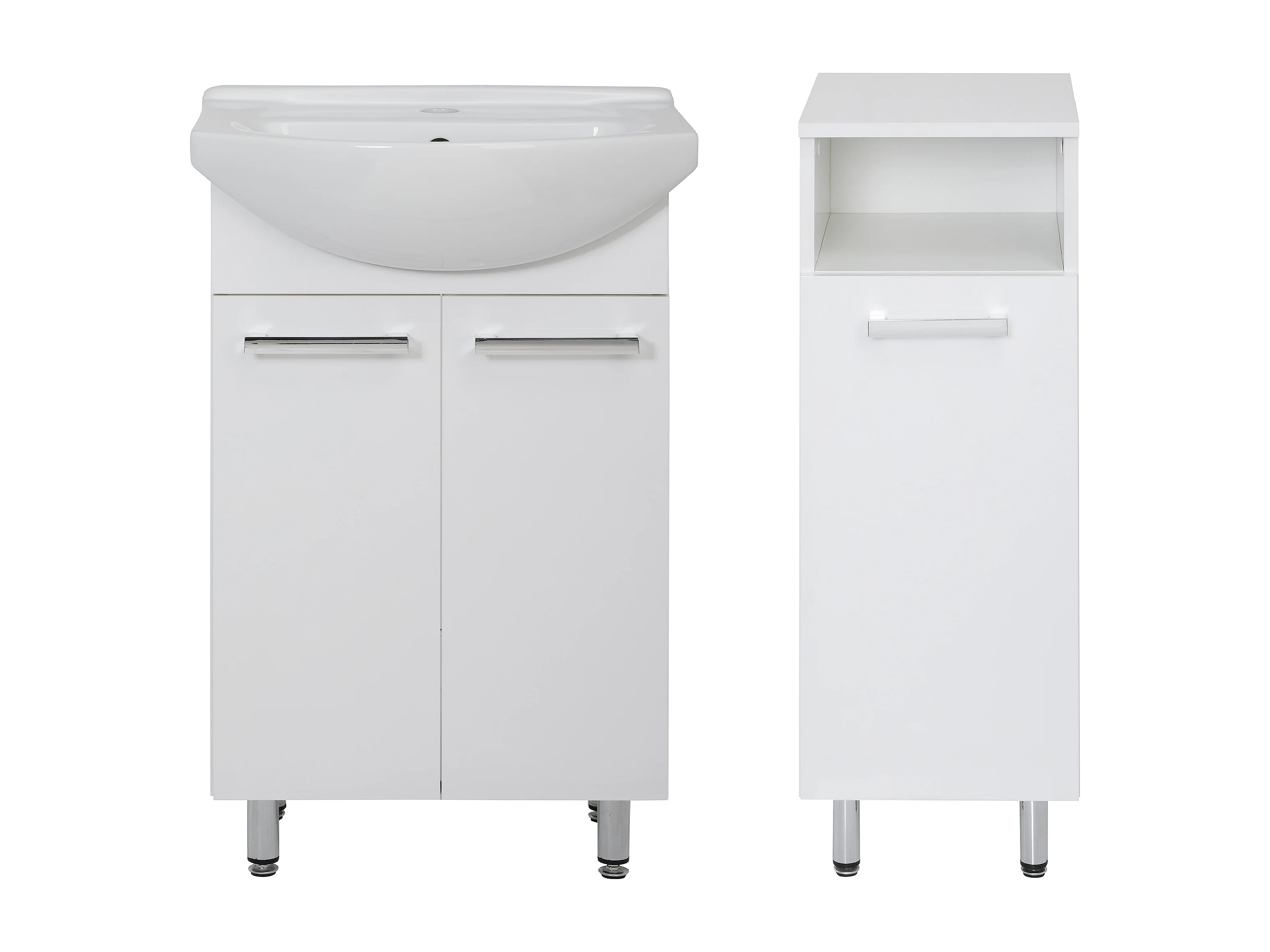 Conjunto blanco para baño de pie 50 cm Armario con lavabo Medio pilar Lupo