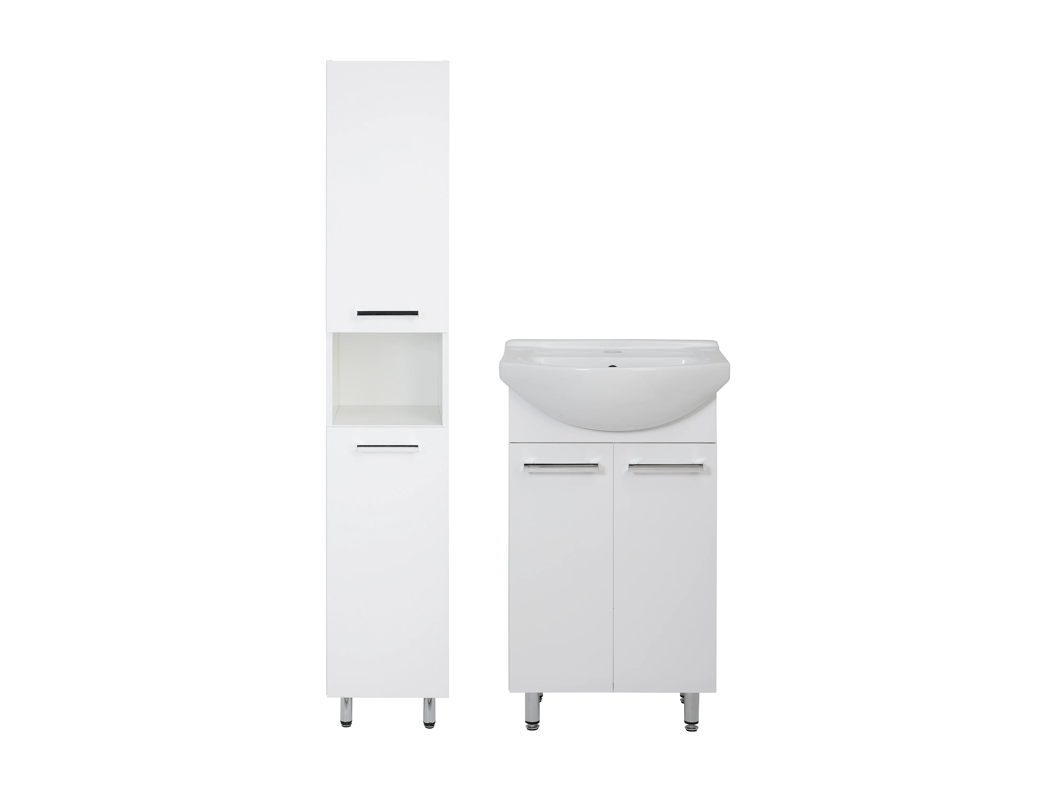 Conjunto blanco para baño de pie, 50 cm, armario con lavabo y columna Lupo