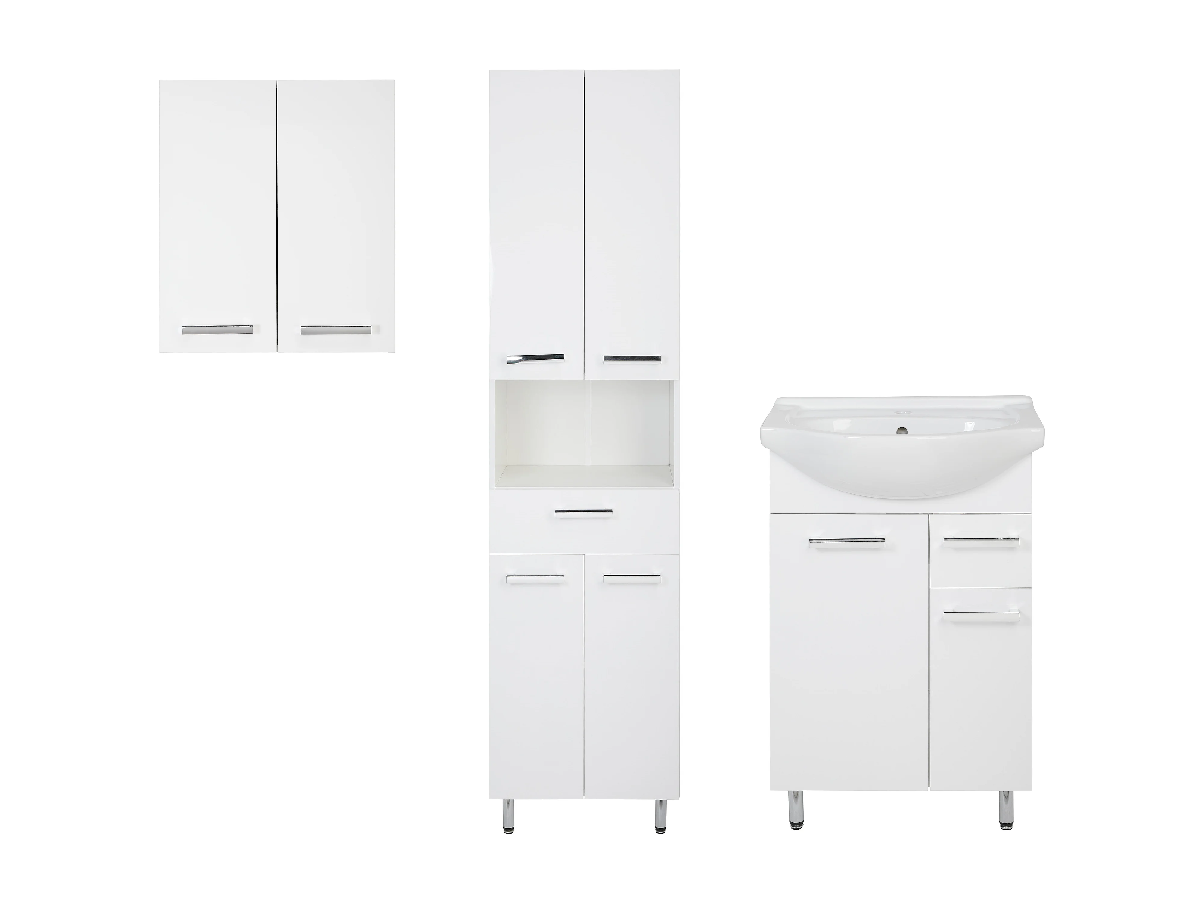 Conjunto blanco para baño de pie 55 cm Armario con lavabo Columna 50 cm Armario superior Lupo