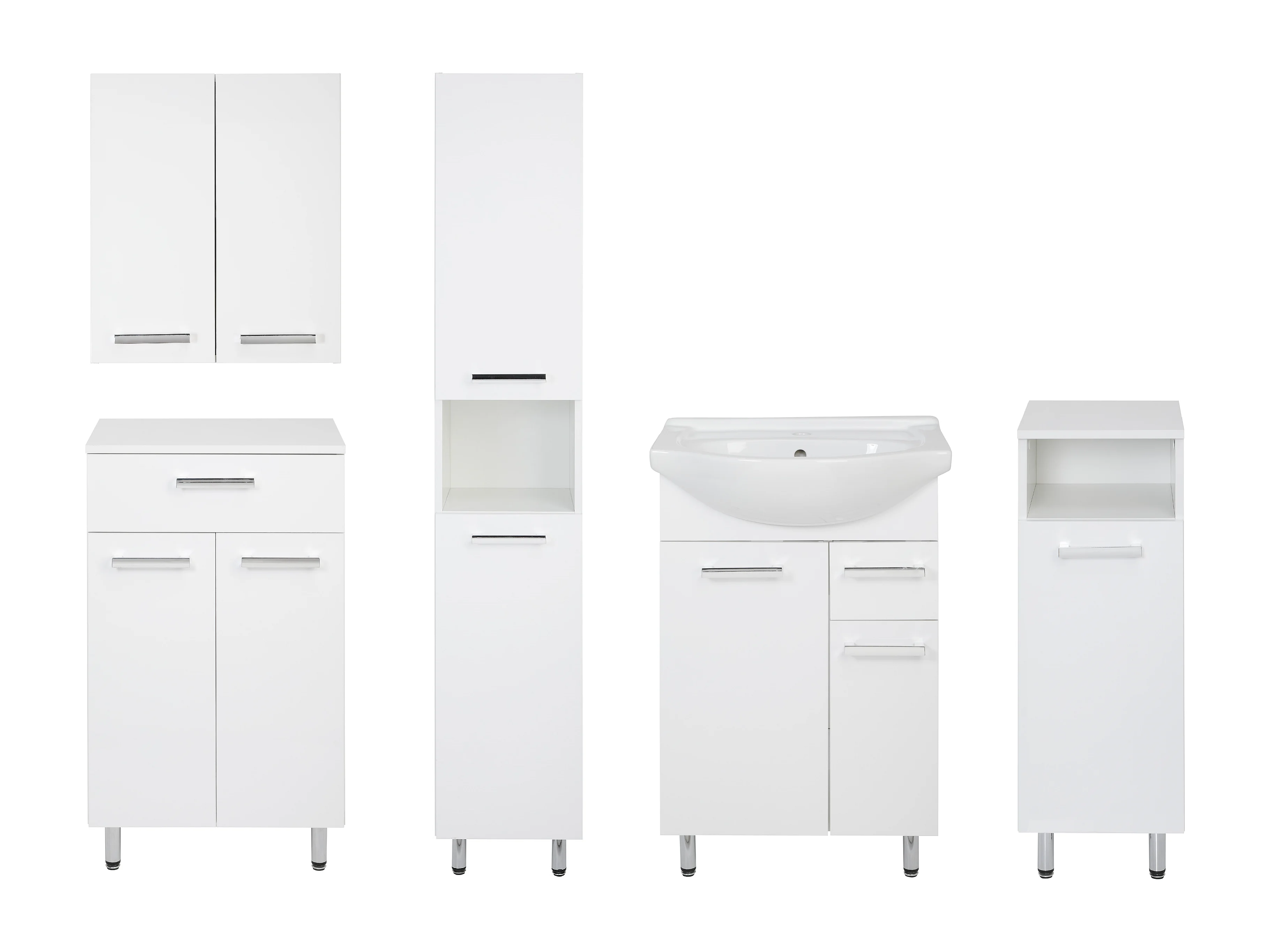 Conjunto blanco para baño de pie 55 cm Armario con lavabo Columna Columna media Cómoda Armario superior Lupo
