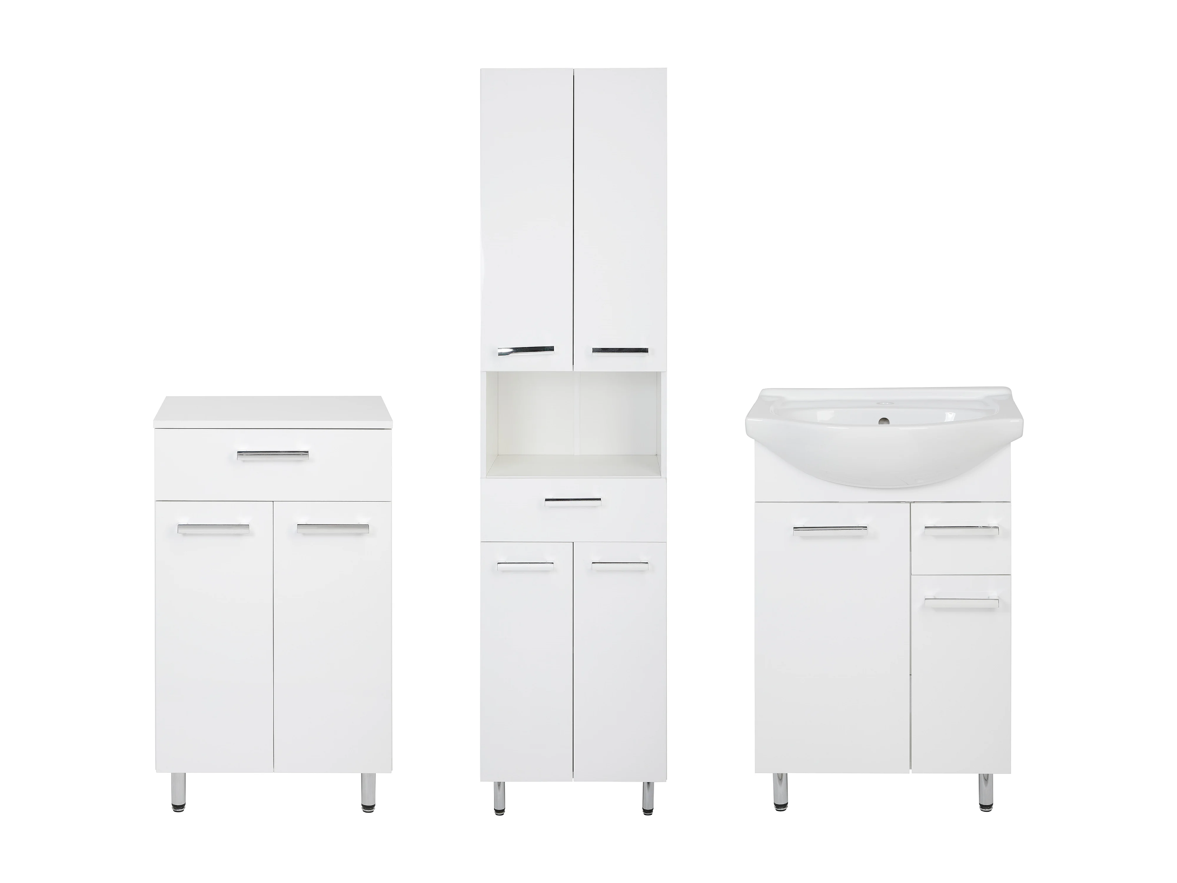 Conjunto blanco para baño de pie, 55 cm, armario con lavabo, columna de 50 cm, cómoda Lupo