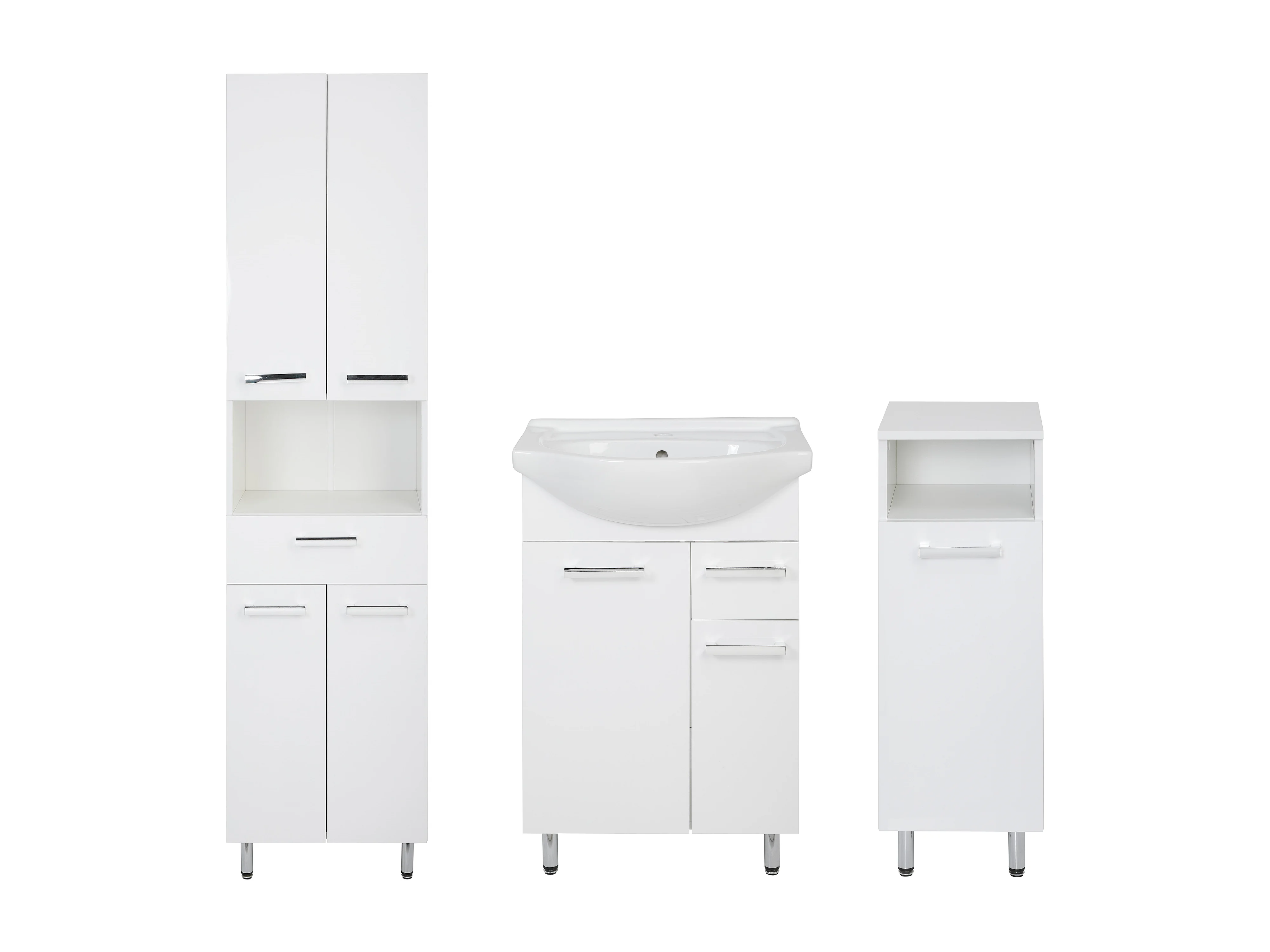 Conjunto blanco para baño de pie, 55 cm, armario con lavabo, columna de 50 cm, semicolumna Lupo