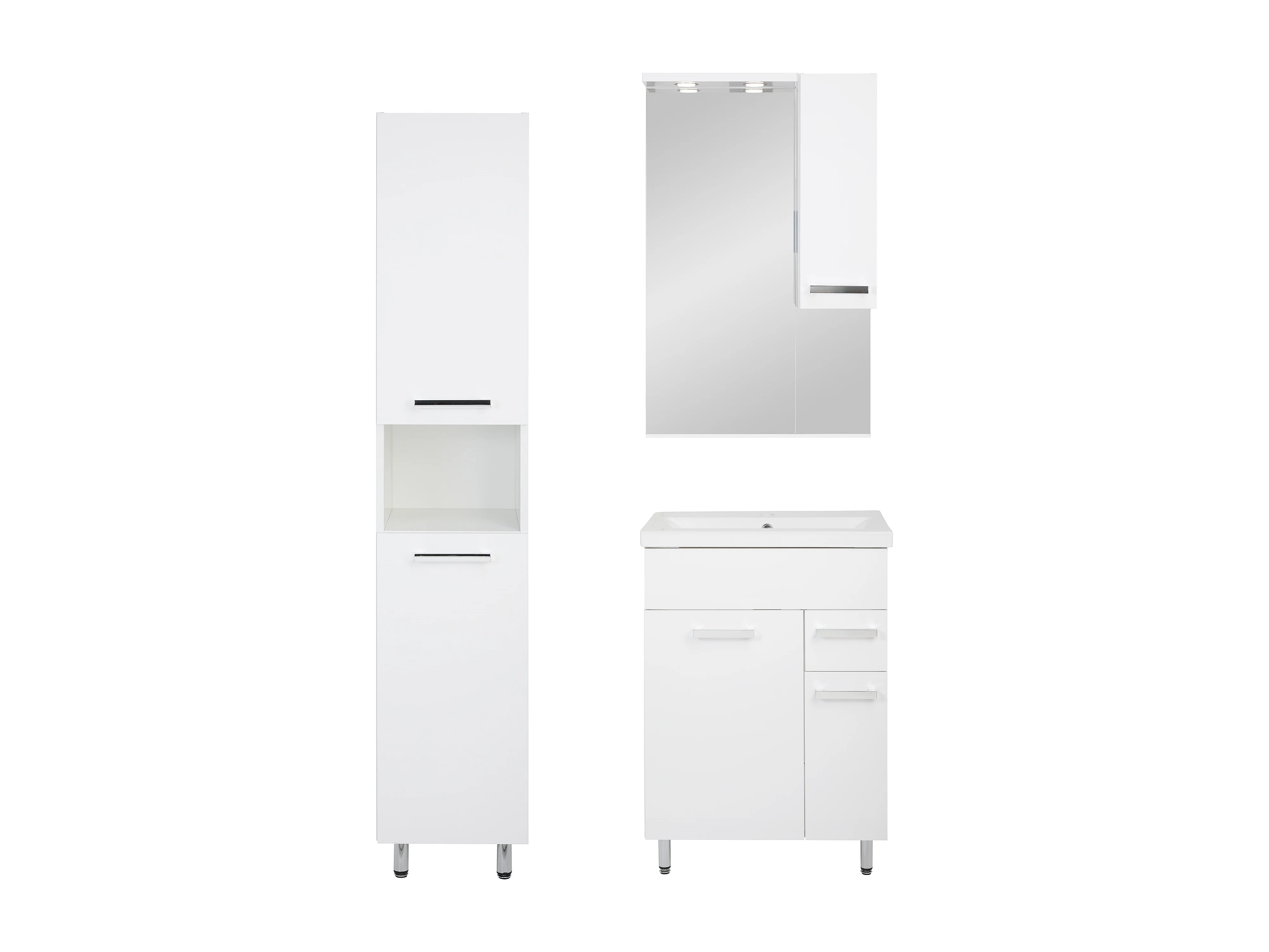 Conjunto blanco para baño de pie 60 cm Armario con lavabo Columna Armario con espejo Lupo