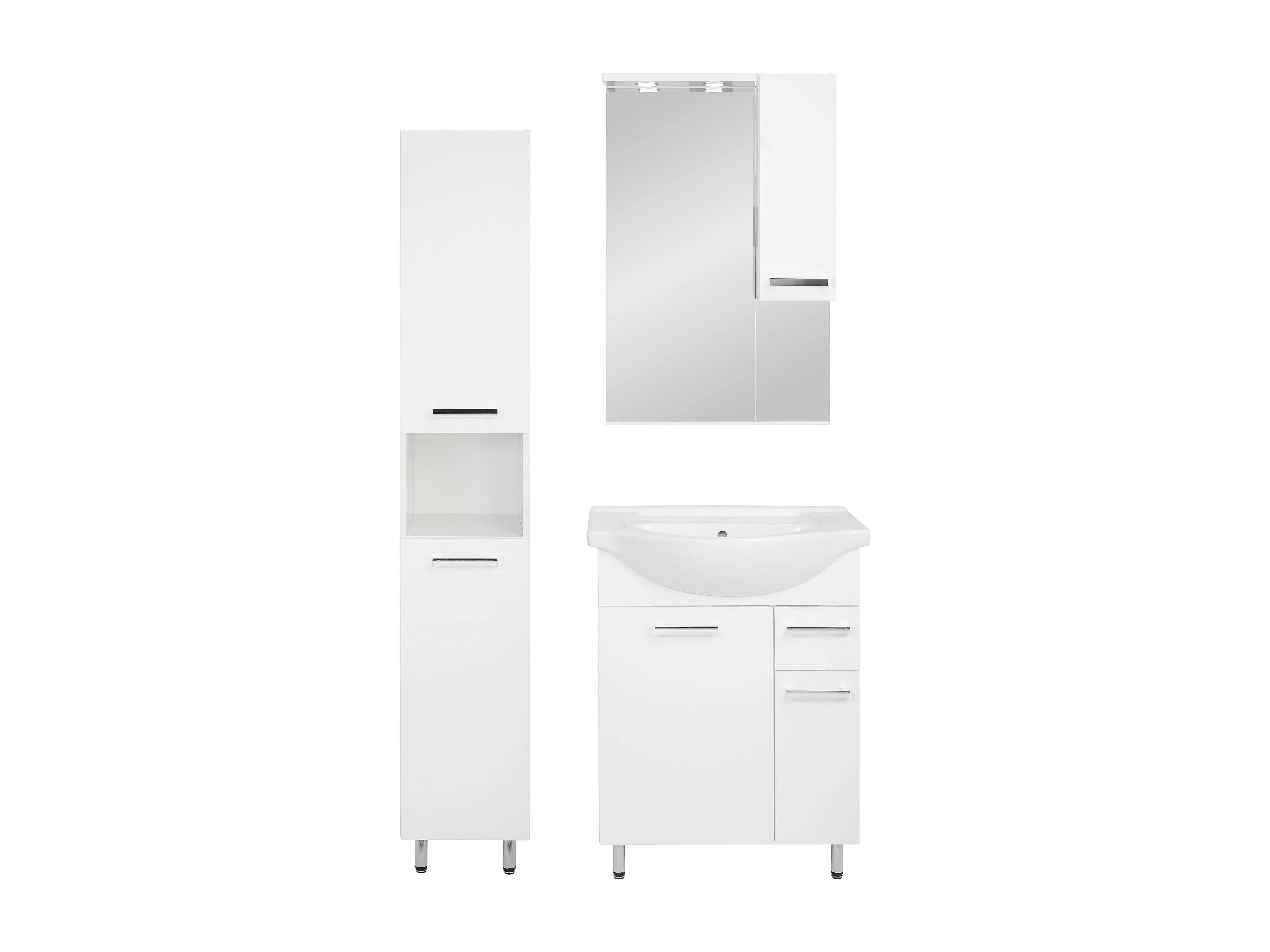 Conjunto blanco para baño de pie, 65 cm, armario con lavabo, columna, armario con espejo Lupo