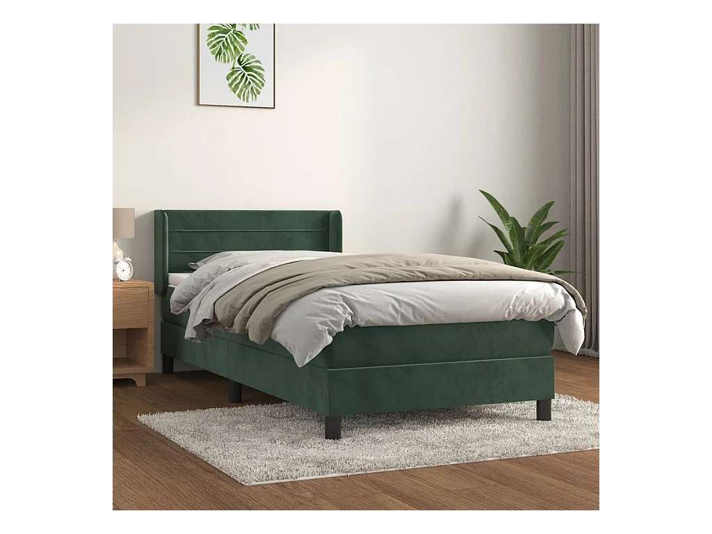 Conjunto Boxspring - 100x200 cm + colchón terciopelo verde oscuro ES948407