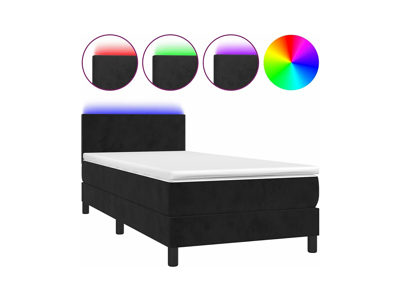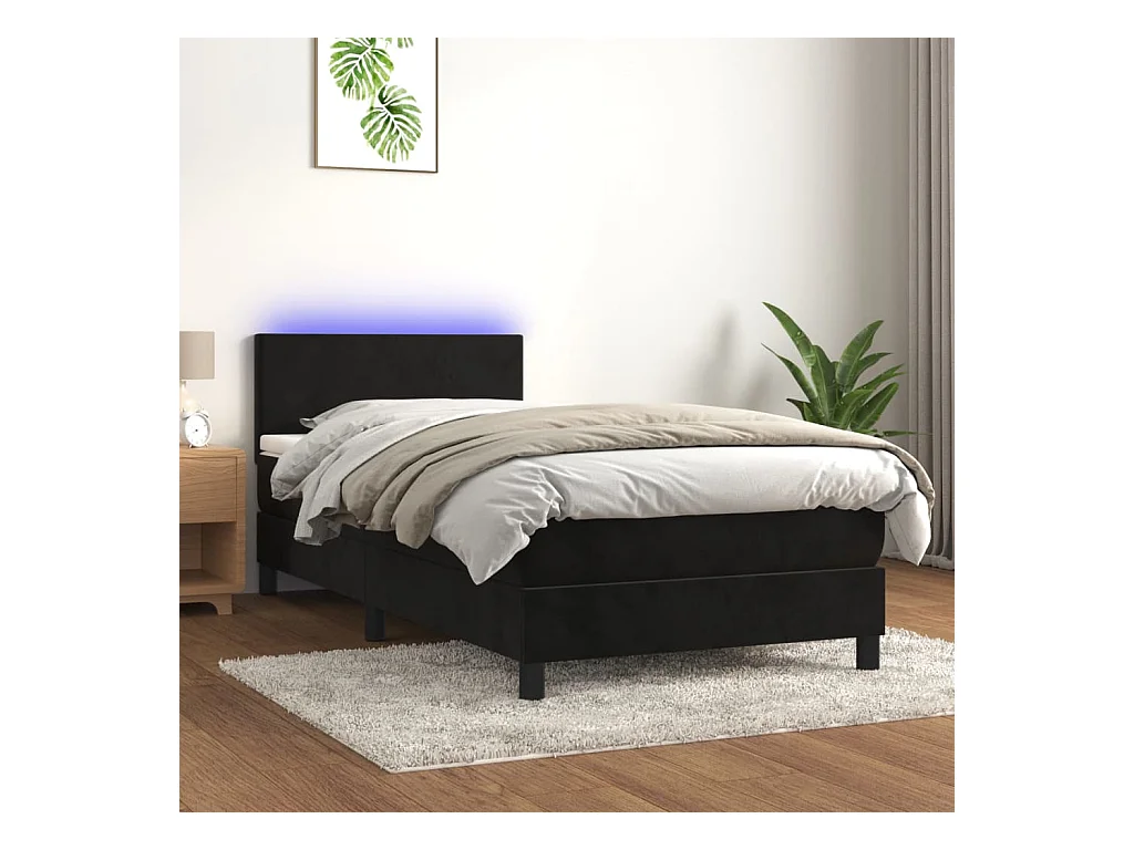 Conjunto Boxspring - 100x200 cm colchón y LED terciopelo negro ES863835