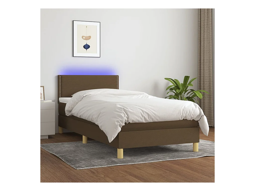Conjunto Boxspring - 100x200 cm + Somieres + colchón LED tela marrón oscuro ES45081
