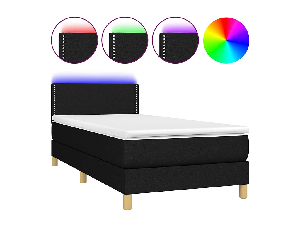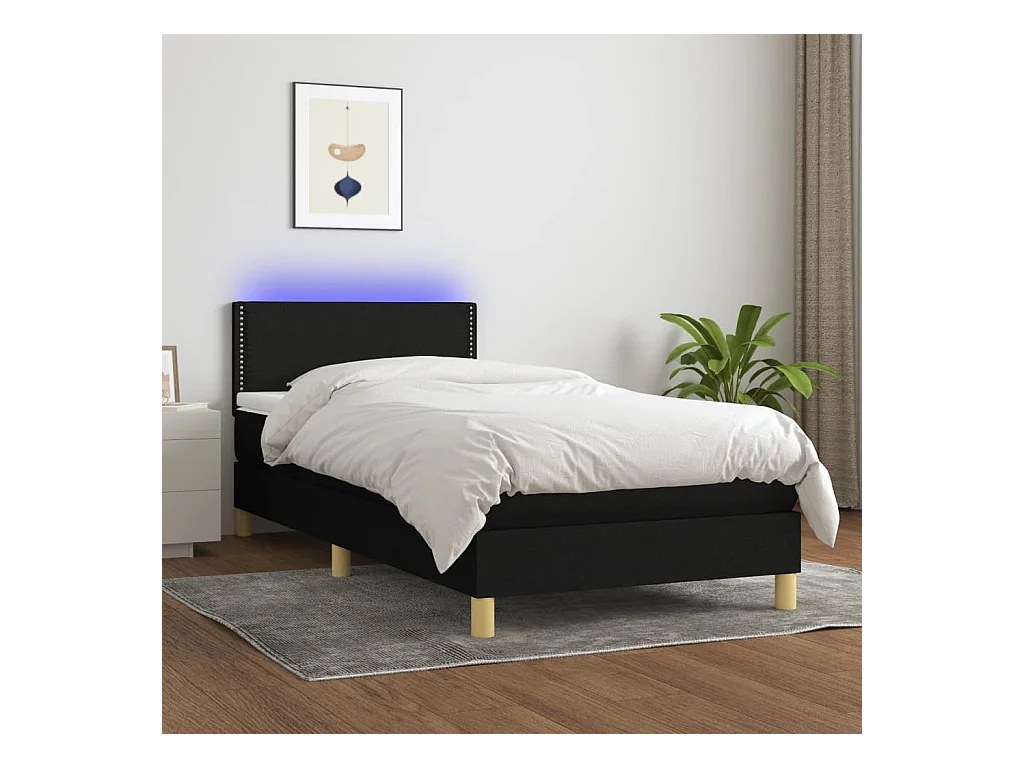 Conjunto Boxspring - 100x200 cm + Somieres + colchón LED tela negro ES44585