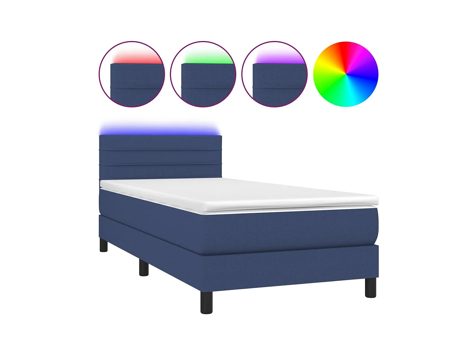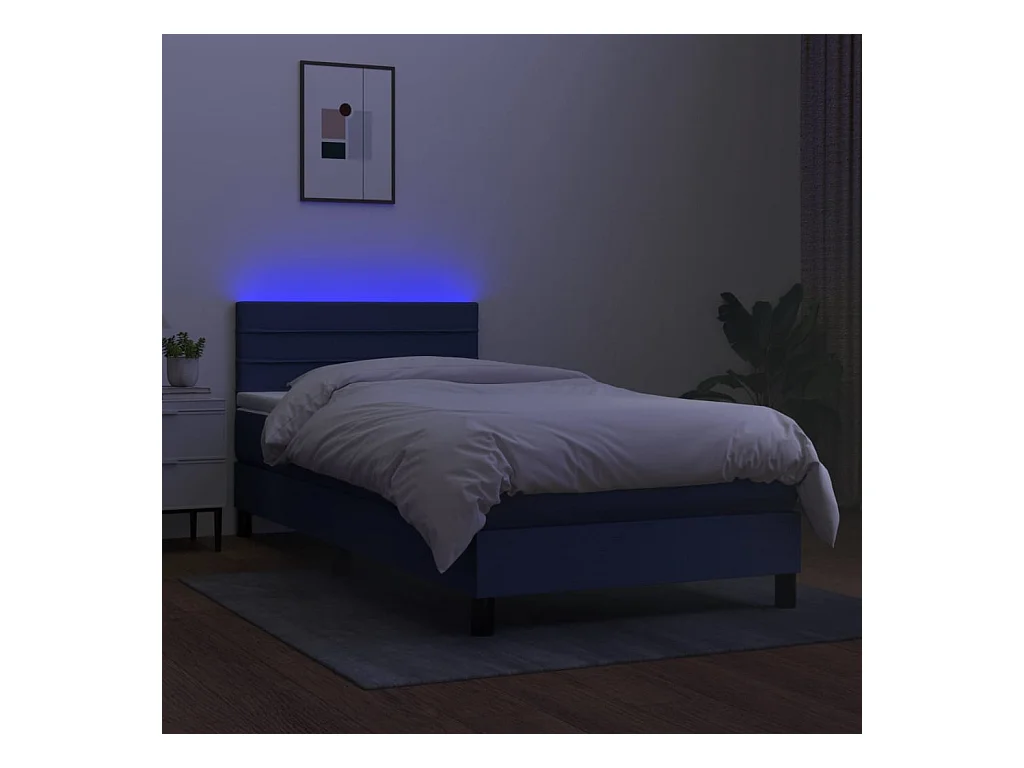 Conjunto Boxspring - 100x200 cm + Somieres + colchón + luces LED tela azul ES44188
