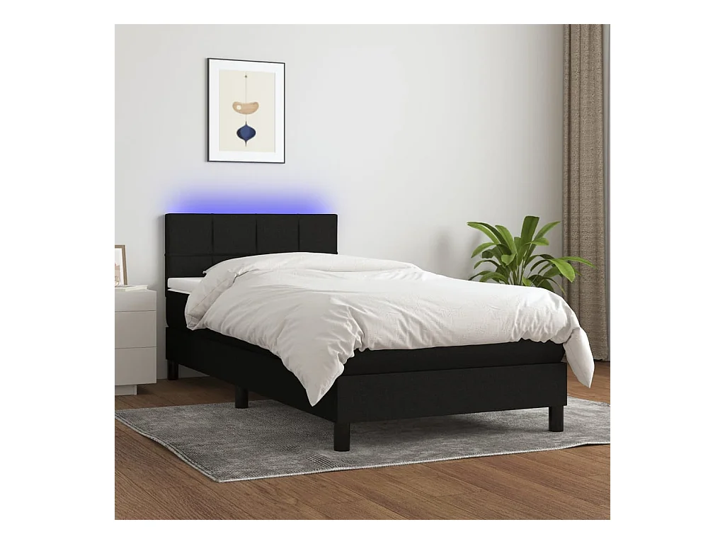 Conjunto Boxspring - 100x200 cm + Somieres + colchón + luces LED tela negro ES44924