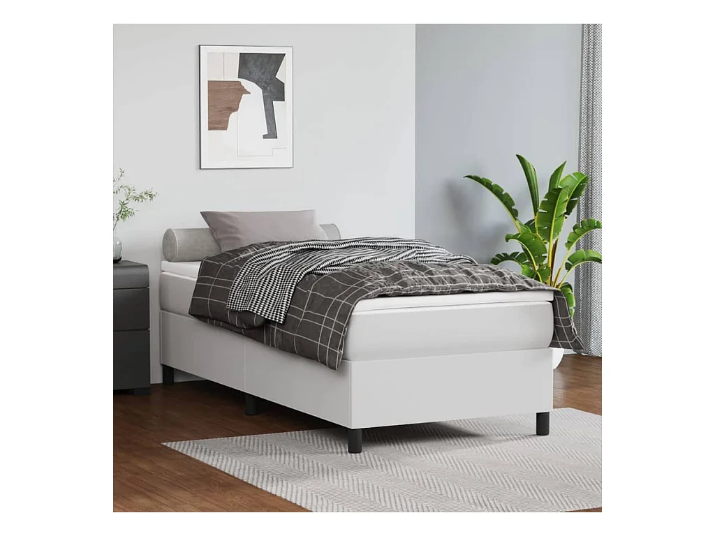 Conjunto Boxspring - 80x200 cm + Somieres + colchón cuero sintético blanco ES41652