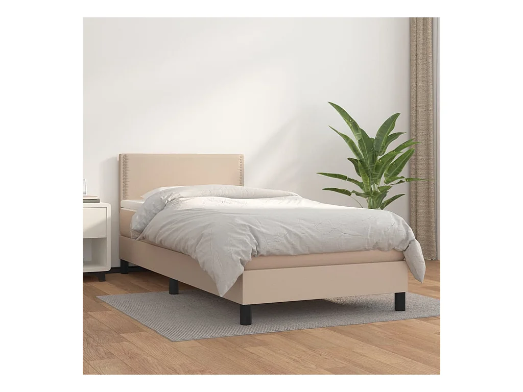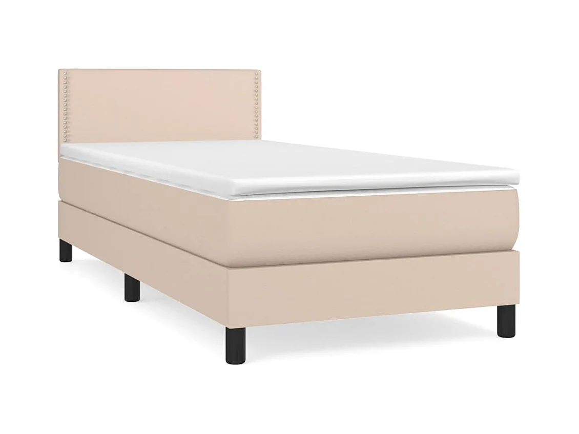 Conjunto Boxspring - 80x200 cm + Somieres + colchón cuero sintético capuchino ES46054