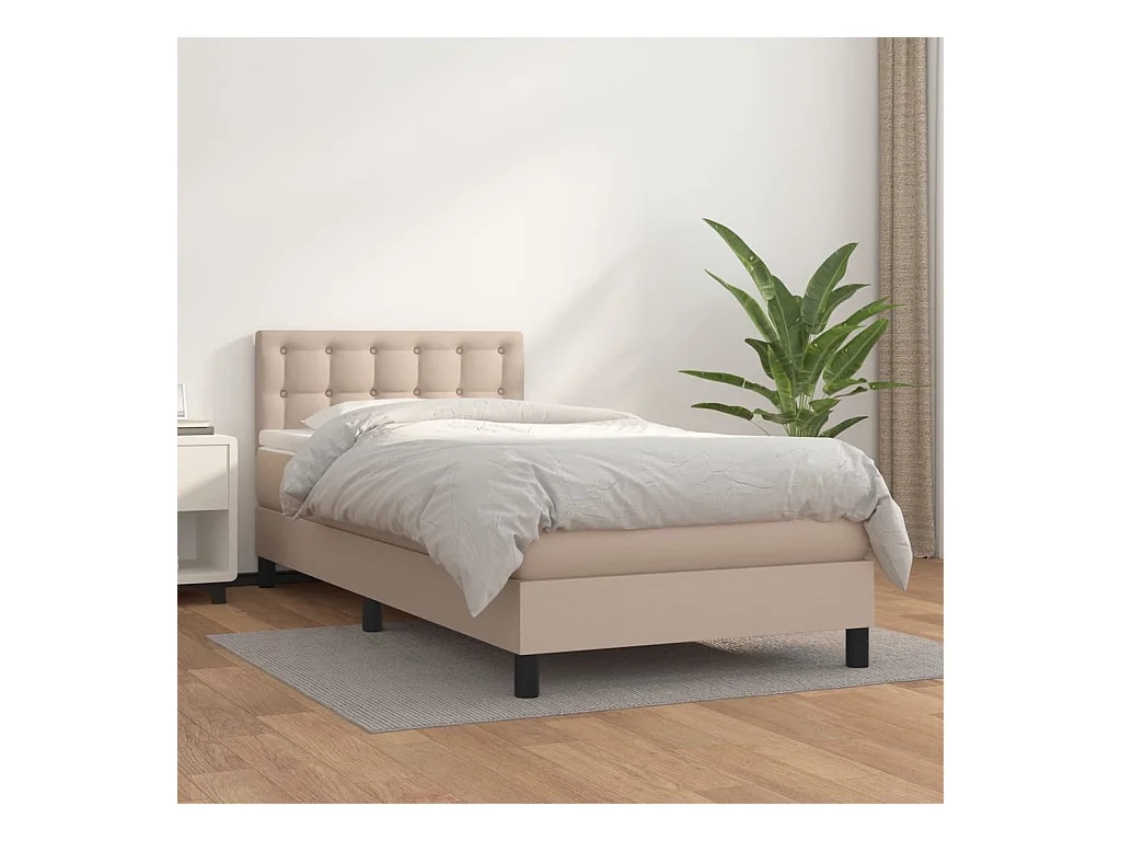 Conjunto Boxspring - 80x200 cm + Somieres + colchón cuero sintético capuchino ES46069