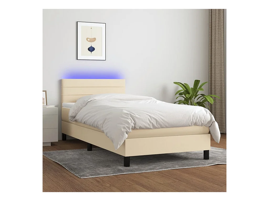Conjunto Boxspring - 80x200 cm + Somieres + colchón + luces LED tela crema ES45165