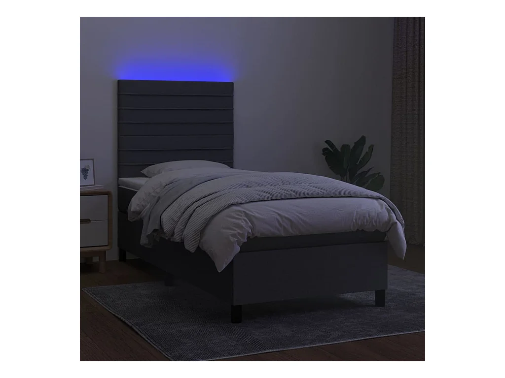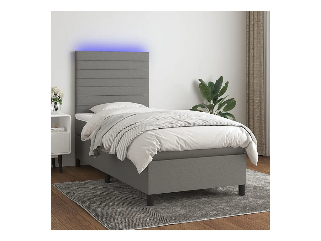 Conjunto Boxspring - 80x200 cm + Somieres + colchón + luces LED tela gris oscuro ES42892
