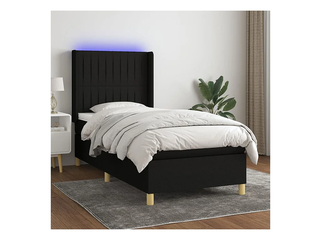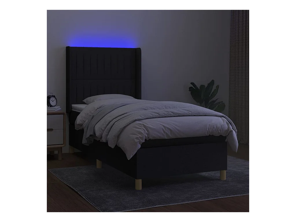 Conjunto Boxspring - 80x200 cm + Somieres + colchón + luces LED tela negro ES42234