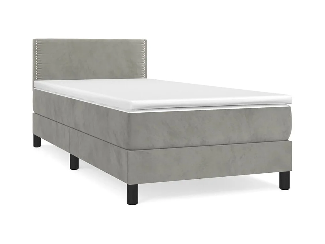 Conjunto Boxspring - 90x190 cm + colchón terciopelo gris claro ES678985