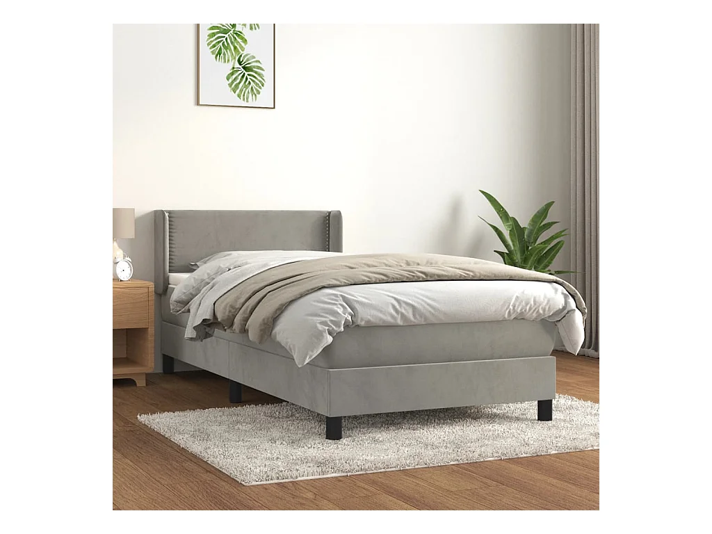Conjunto Boxspring - 90x190 cm + colchón terciopelo gris claro ES904873