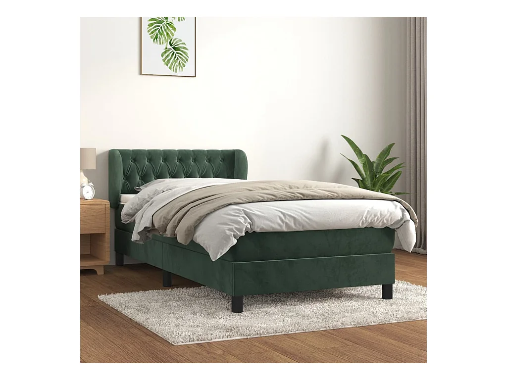 Conjunto Boxspring - 90x190 cm + colchón terciopelo verde oscuro ES422951