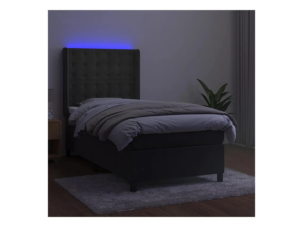 Conjunto Boxspring - 90x190 cm colchón y LED terciopelo gris oscuro ES833811