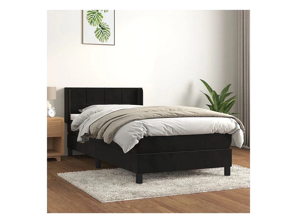 Conjunto Boxspring - 90x190 cm + Somieres + colchón cuero sintético negro ES39218
