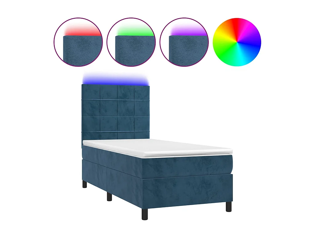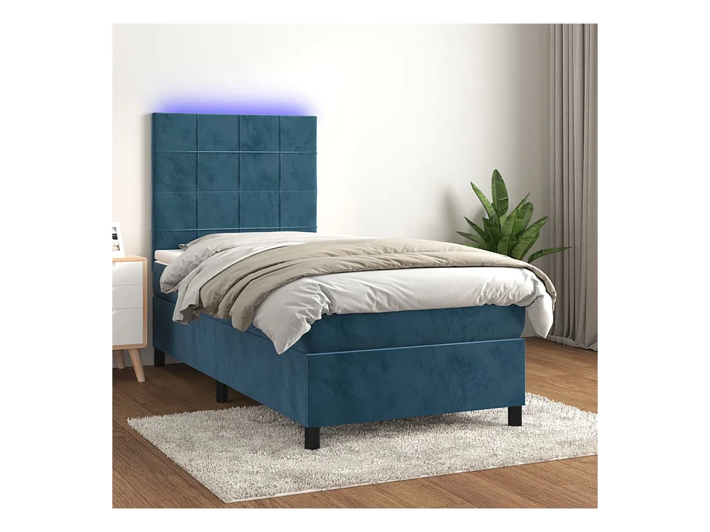 Conjunto Boxspring - 90x190 cm + Somieres + colchón + LED terciopelo azul oscuro ES43497
