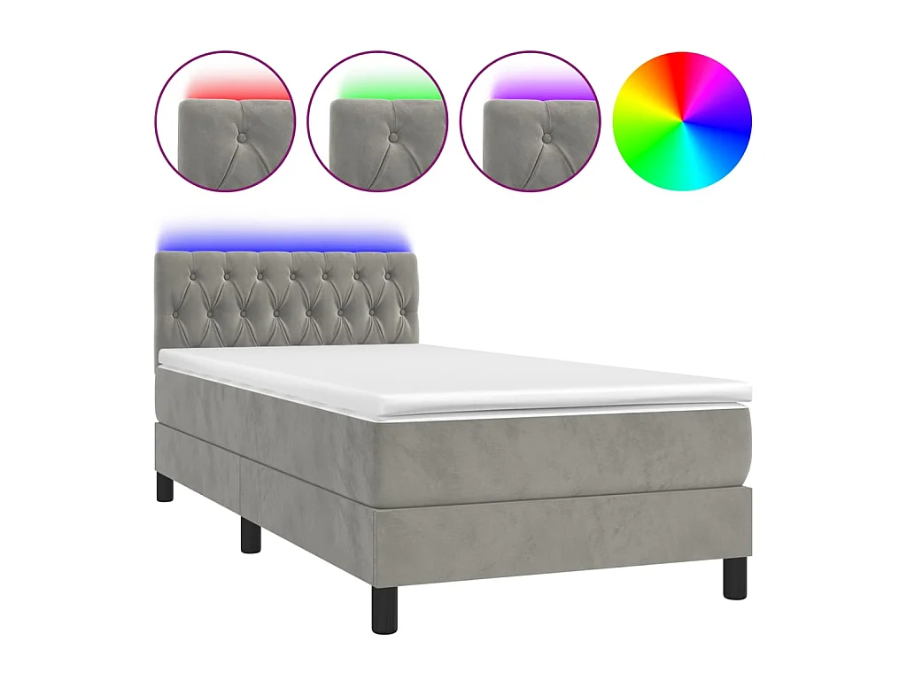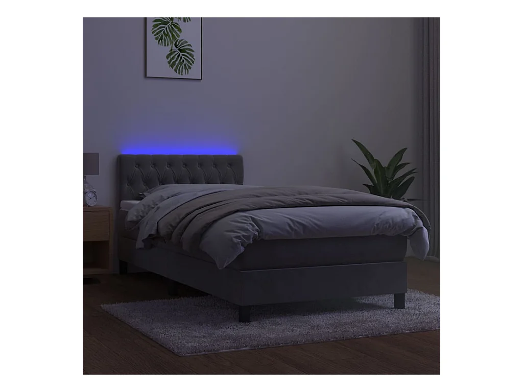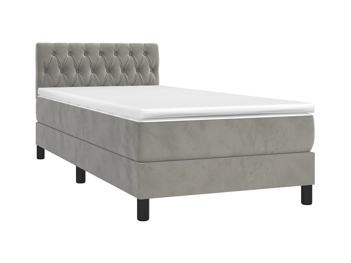 Conjunto Boxspring - 90x190 cm + Somieres + colchón + LED terciopelo gris claro ES43395