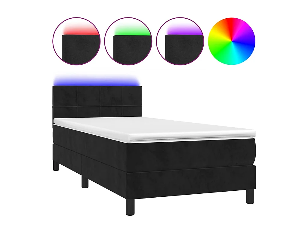 Conjunto Boxspring - 90x190 cm + Somieres + colchón + LED terciopelo negro ES44348