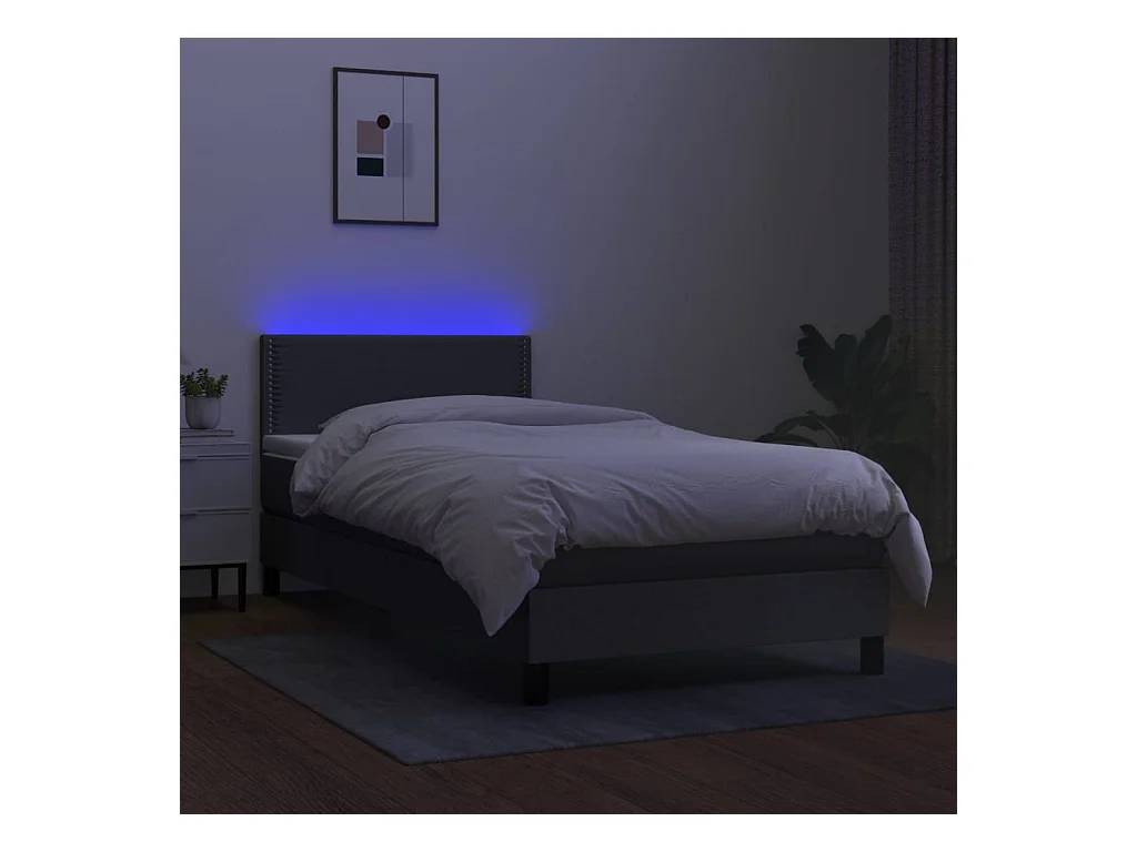 Conjunto Boxspring - 90x190 cm + Somieres + colchón + luces LED tela gris oscuro ES43797