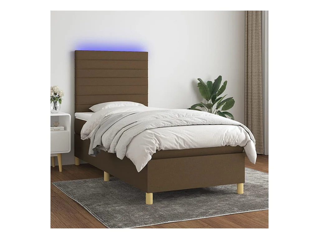 Conjunto Boxspring - 90x190cm colchón y luces LED tela marrón oscuro ES615902