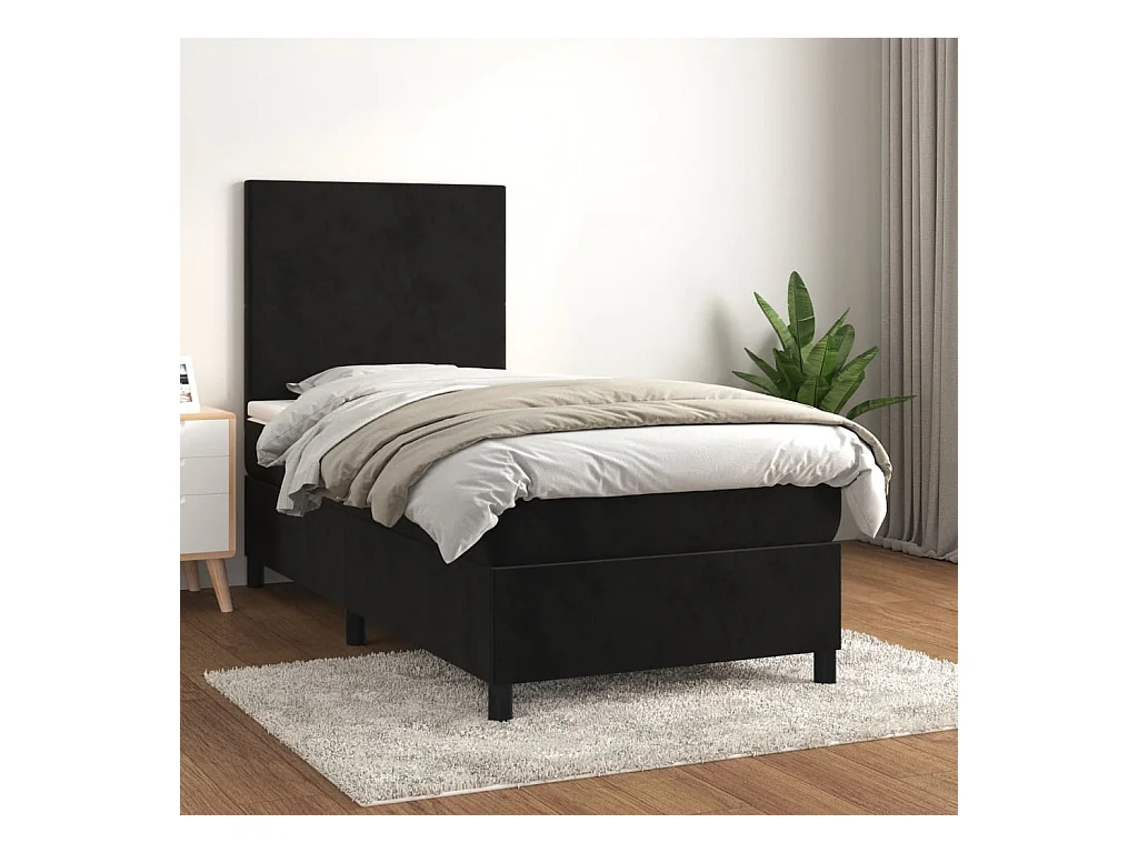 Conjunto Boxspring - 90x200 cm + colchón terciopelo negro ES854393