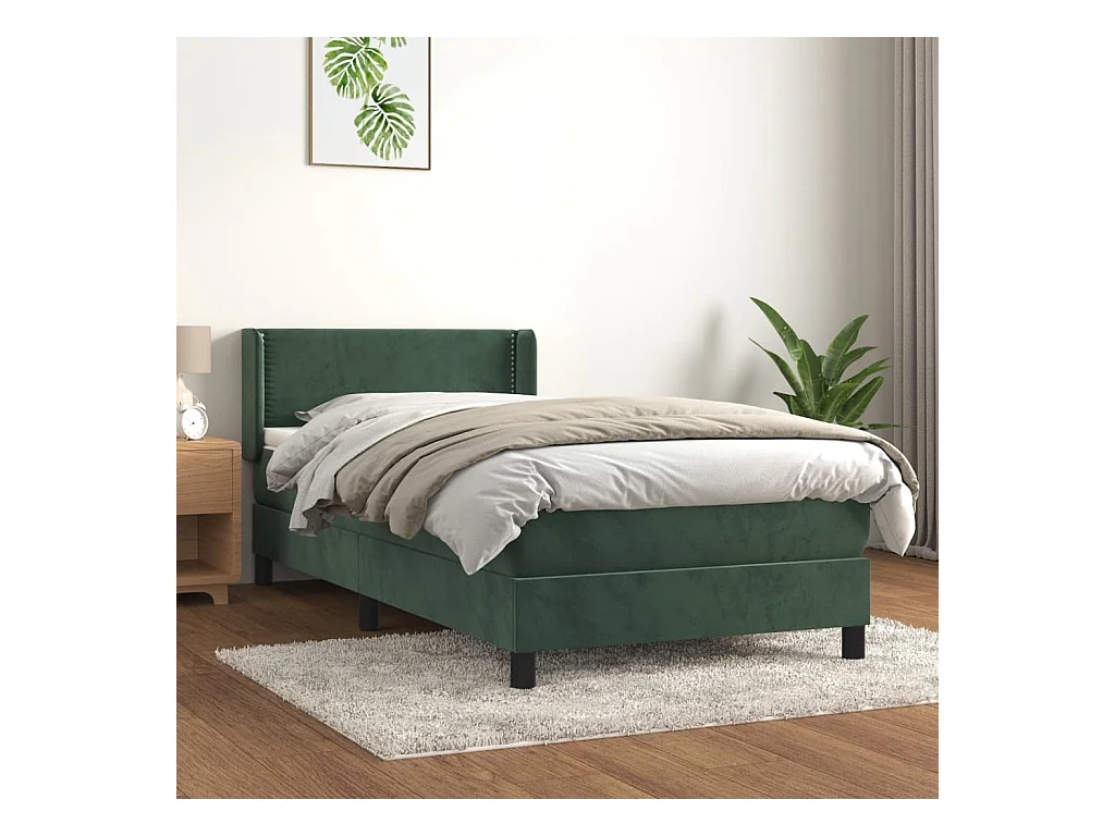 Conjunto Boxspring - 90x200 cm + colchón terciopelo verde oscuro ES802902