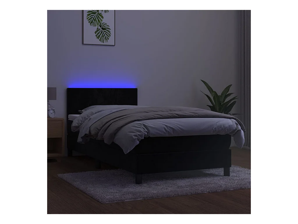 Conjunto Boxspring - 90x200 cm colchón y LED terciopelo negro ES665580