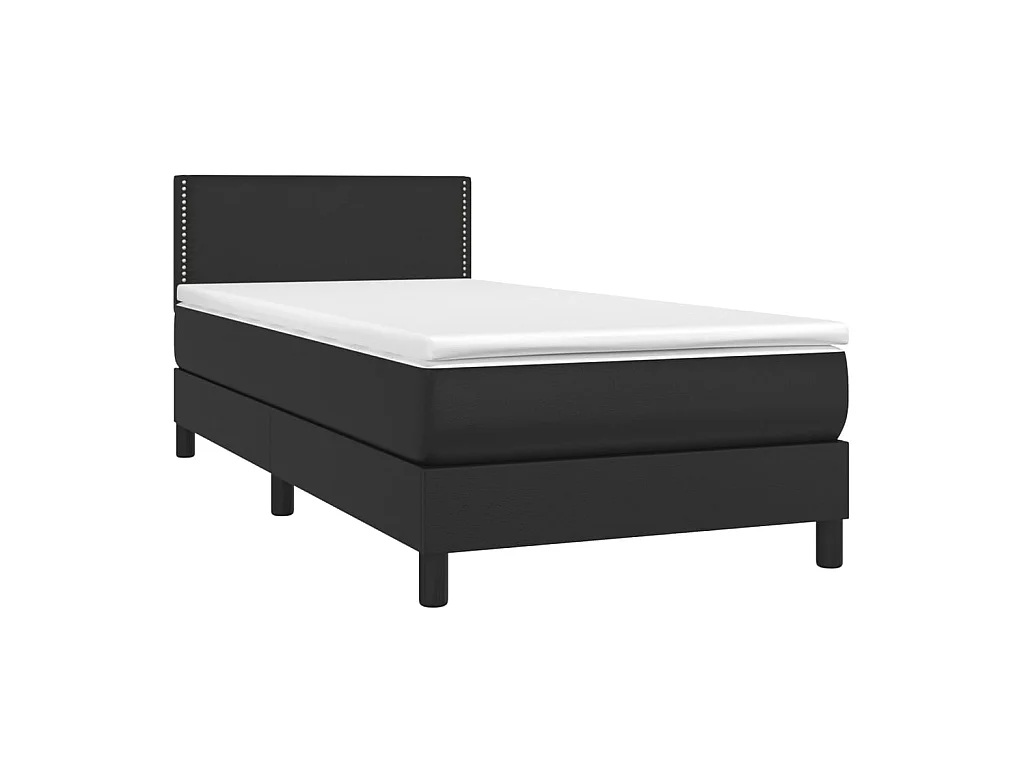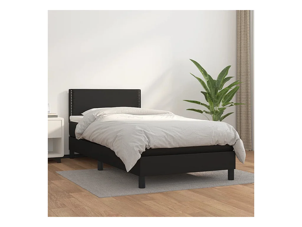 Conjunto Boxspring - 90x200 cm + Somieres + colchón cuero sintético negro ES40762
