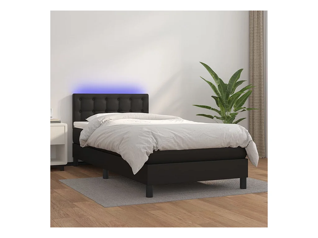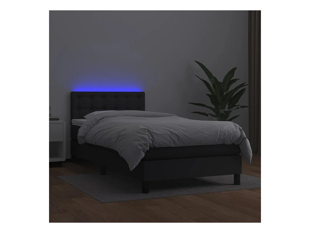 Conjunto Boxspring - 90x200 cm + Somieres + colchón + LED cuero sintético negro ES44692
