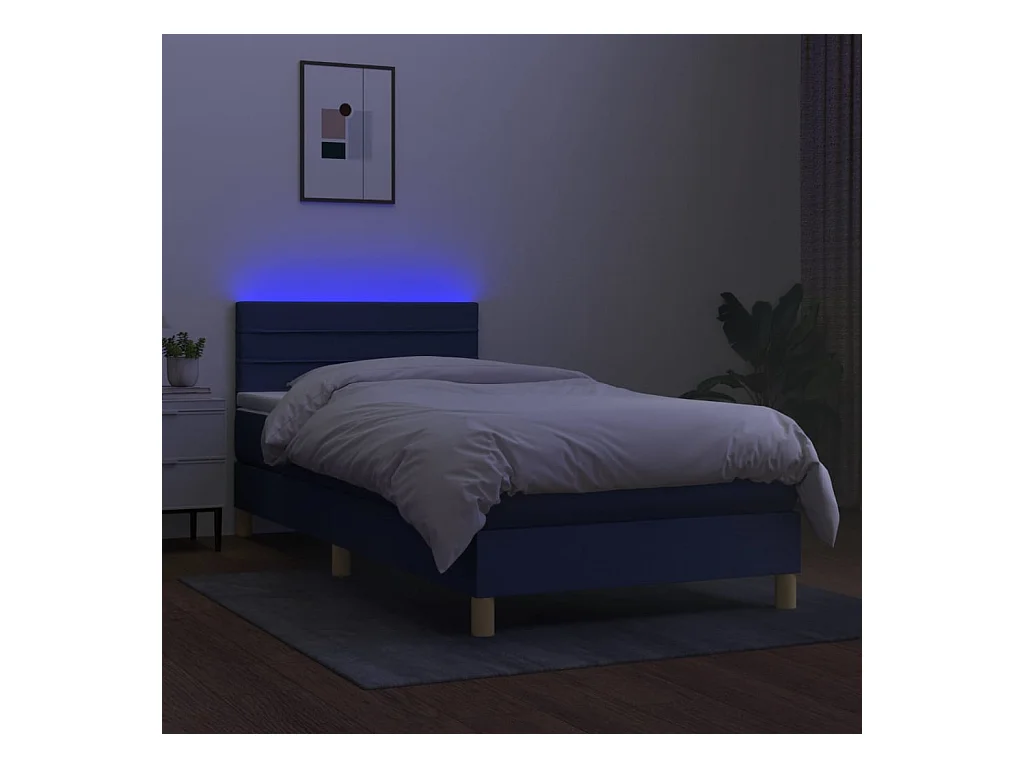 Conjunto Boxspring - 90x200 cm + Somieres + colchón + LED tela azul ES43092