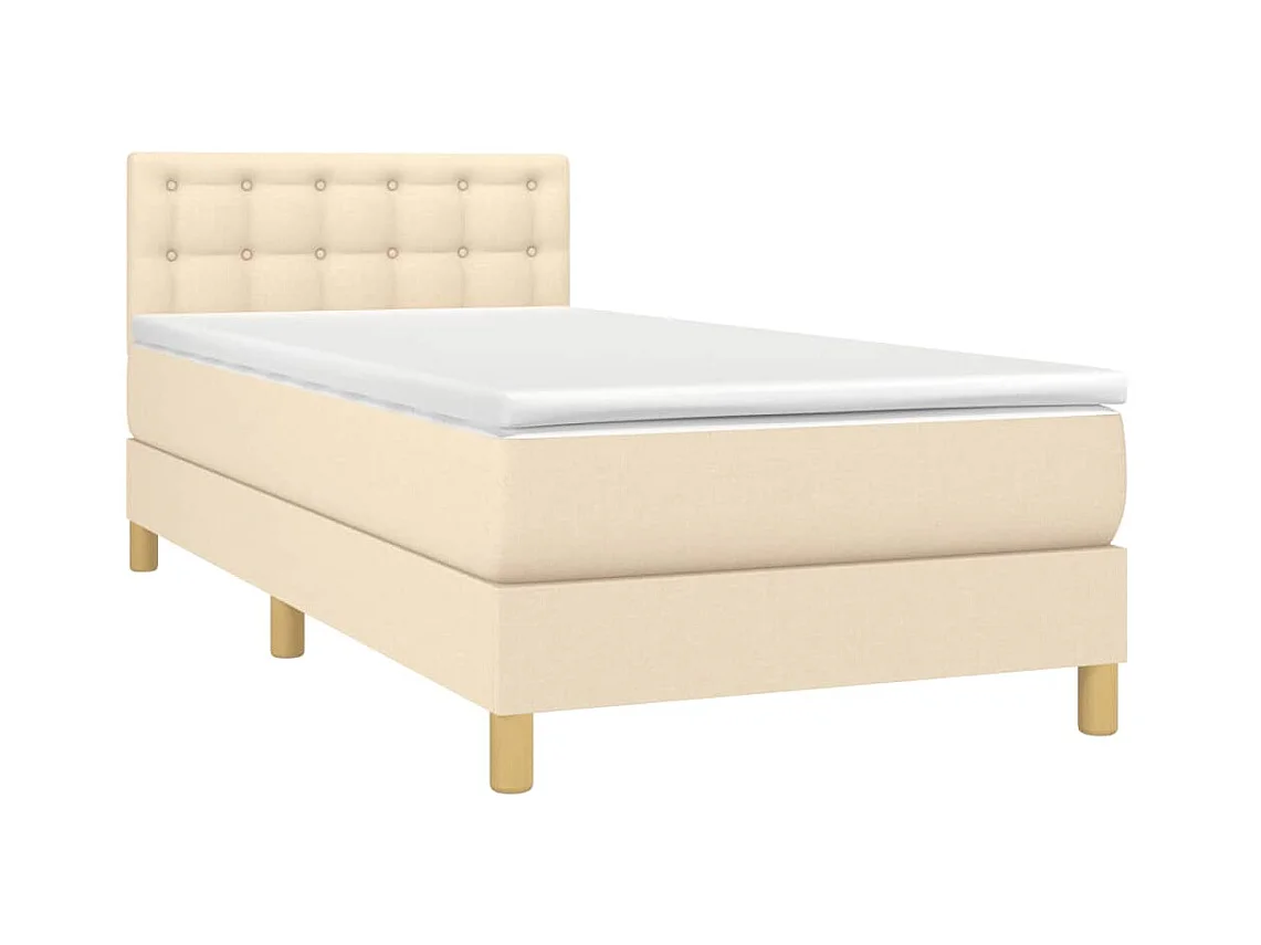 Conjunto Boxspring - 90x200 cm + Somieres + colchón + LED tela crema ES44973