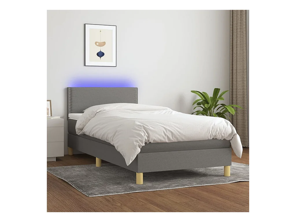 Conjunto Boxspring - 90x200 cm + Somieres + colchón + LED tela gris oscuro ES43765