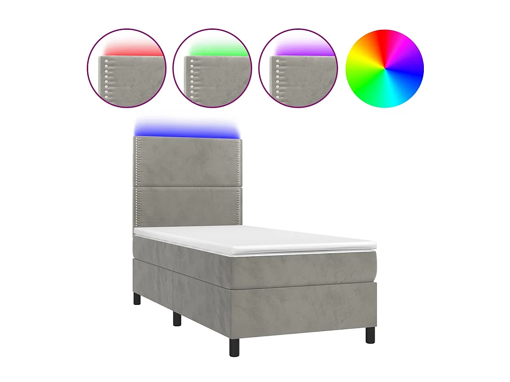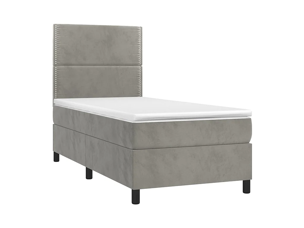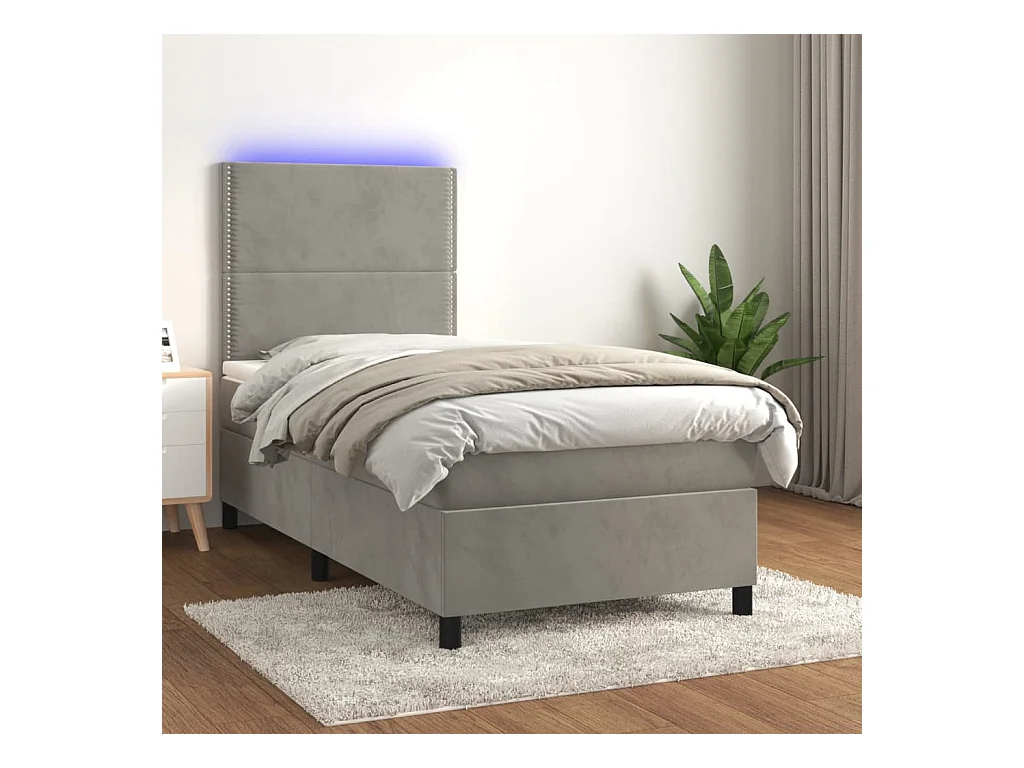 Conjunto Boxspring - 90x200 cm + Somieres + colchón + LED terciopelo gris claro ES42357
