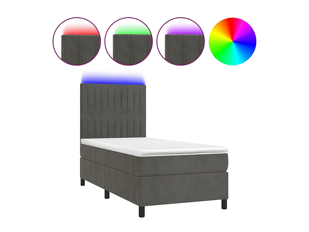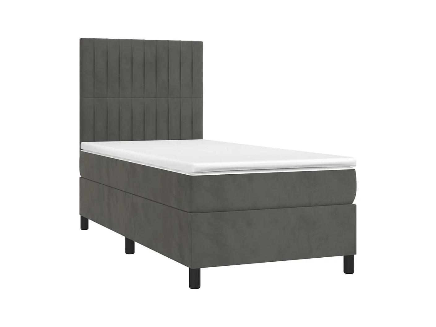 Conjunto Boxspring - 90x200 cm + Somieres + colchón + LED terciopelo gris oscuro ES42857