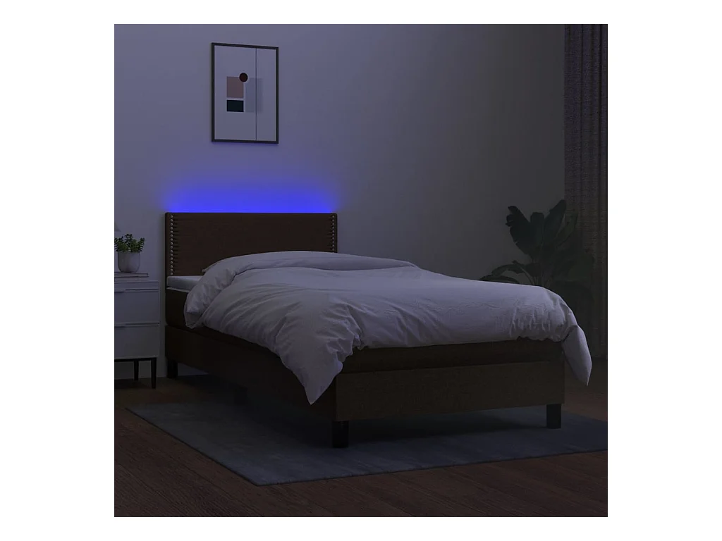 Conjunto Boxspring - 90x200 cm + Somieres + colchón + luces LED tela marrón oscuro ES42816