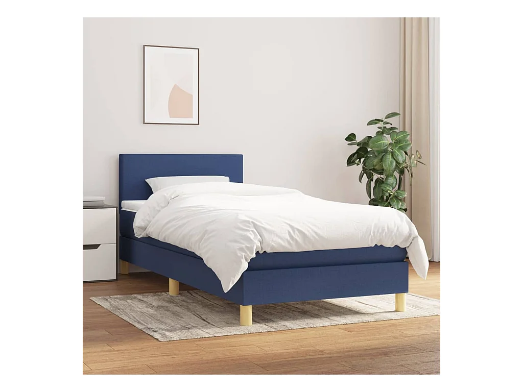 Conjunto Boxspring - 90x200 cm + Somieres + colchón tela azul ES41311