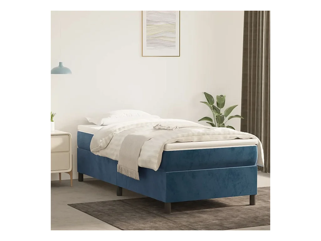 Conjunto Boxspring - 90x200 cm + Somieres + colchón terciopelo azul oscuro ES41312