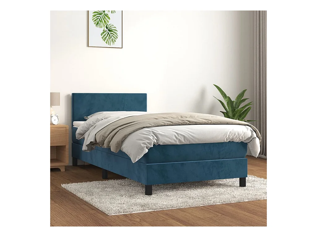 Conjunto Boxspring - 90x200 cm + Somieres + colchón terciopelo azul oscuro ES41338