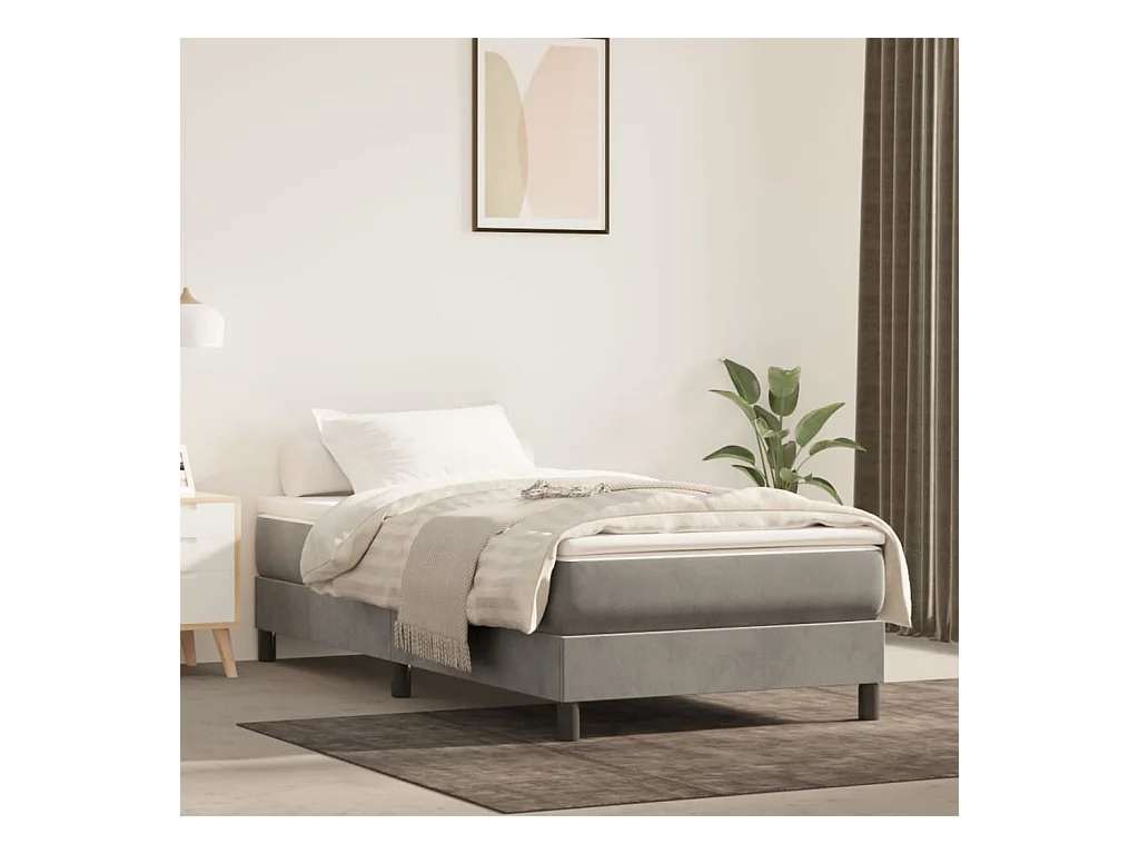 Conjunto Boxspring - 90x200 cm + Somieres + colchón terciopelo gris claro ES35898